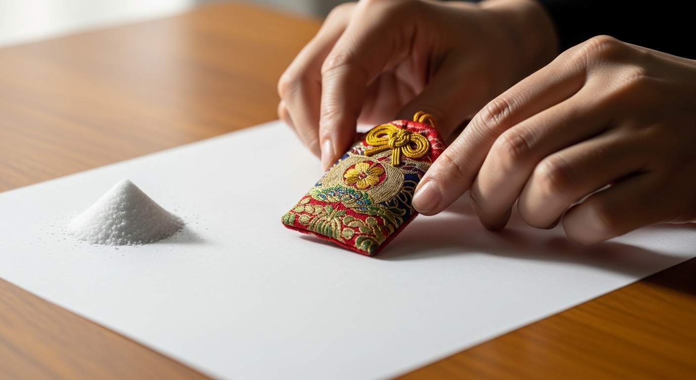 自宅でお守りを処分する際、「本当にこれで清められたのかな」と不安が残る方もいるでしょう。その場合、お清め専用の「塩」を使うことで、儀式としての区切りを明確にする方法もあります。